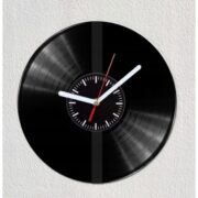 Zegar taki wycięty jest z płyty winylowej, posiada cichy mechanizm zegarowy – płynący, a także białe tło poprawiające czytelność.