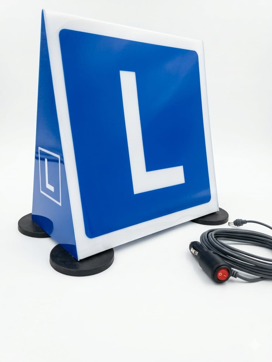 dodatkowy opis: Plafon L nauka jazdy –na dach samochodu z magnetyczną podstawą, emblemat z podświetleniem LED – Andergraf